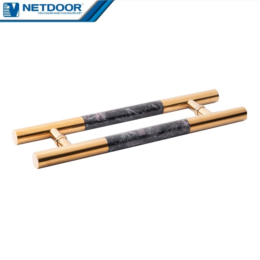 Tay nắm cửa là một phần không thể thiếu của cửa kính thủy lực, giúp cho việc đóng mở cửa trở nên dễ dàng, thuận tiện hơn. Ngoài ra nó còn có tác dụng trang trí, làm đẹp tăng tính thẩm mỹ cho không gian. NETDOOR trân trọng giới thiệu mẫu tay nắm Super vân đá, 2 đậu mạ vàng.
